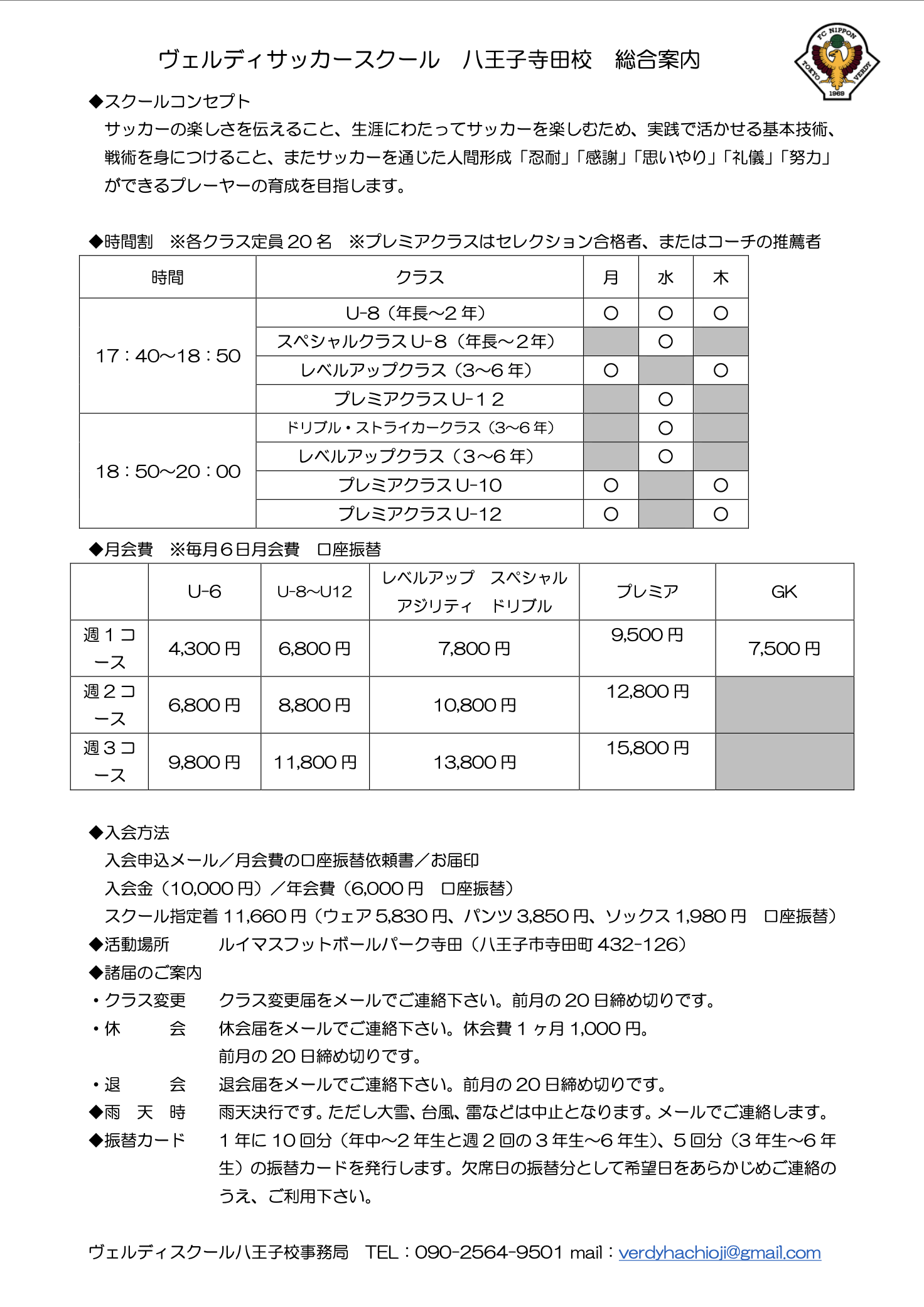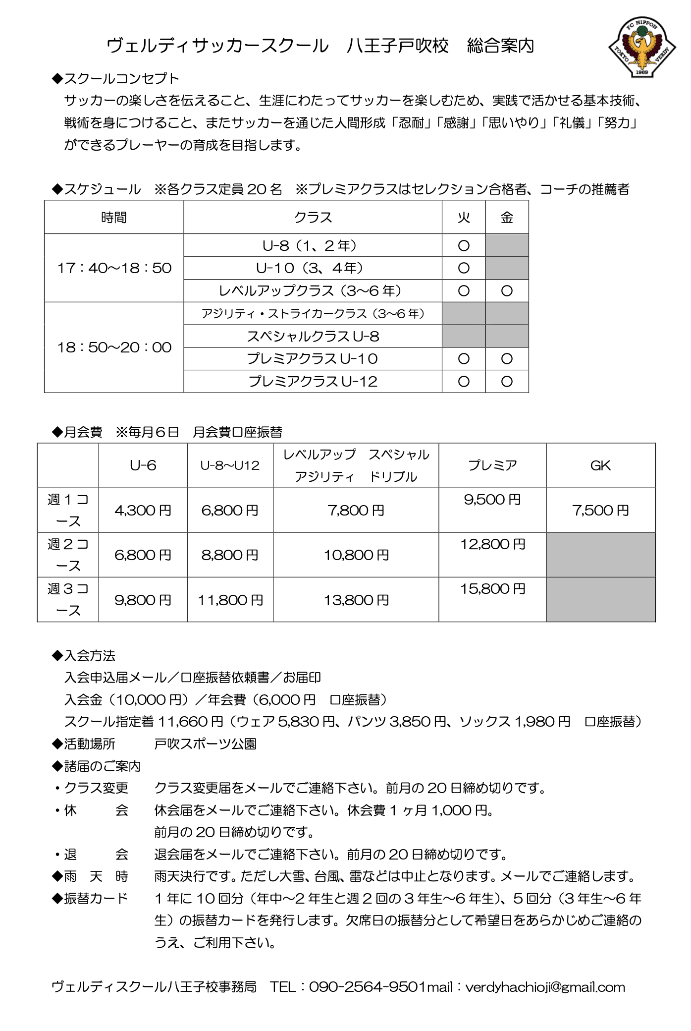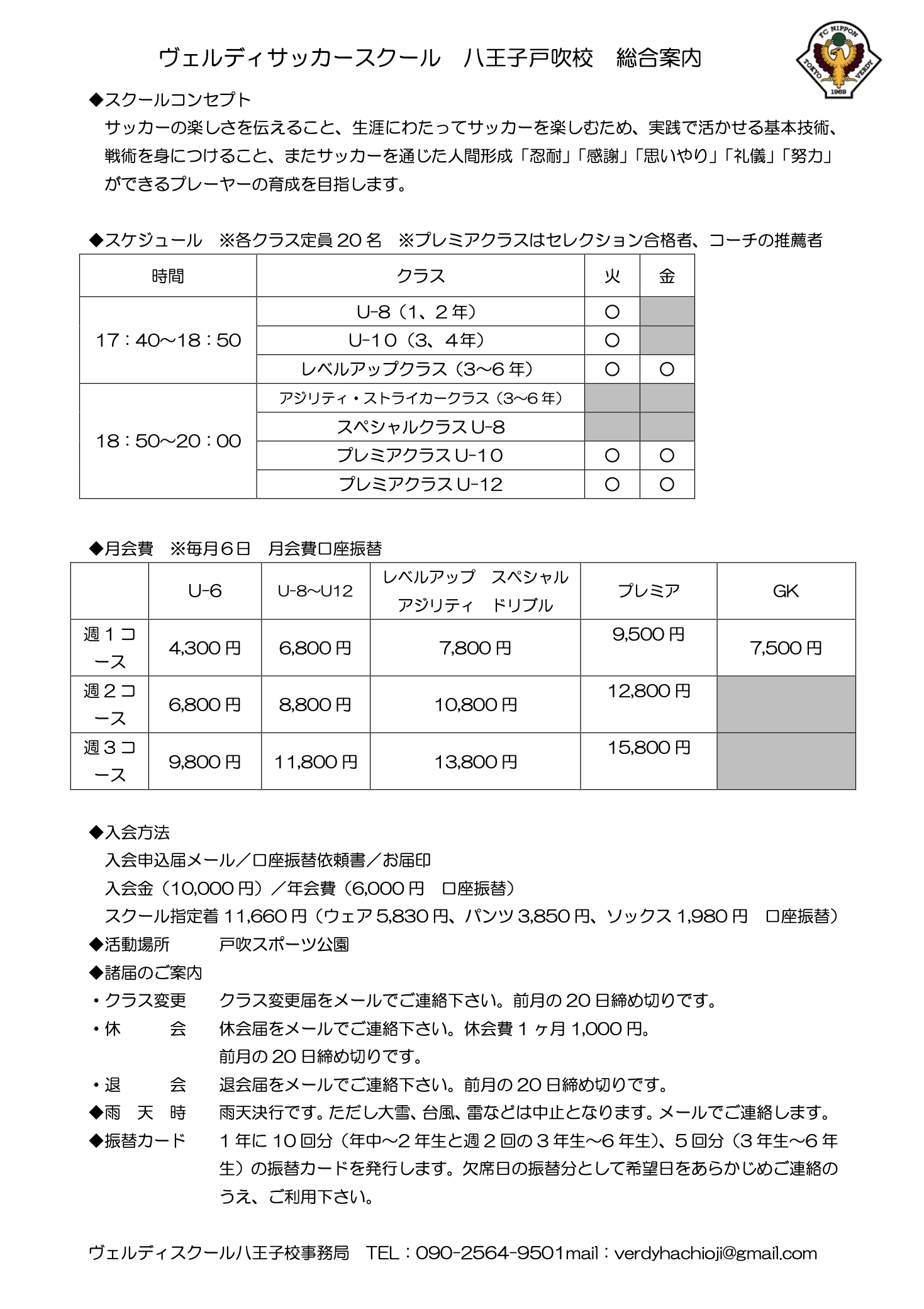 戸吹スポーツ公園校・寺田校(ルイマスフットボールセンター八王子)にて開校中。